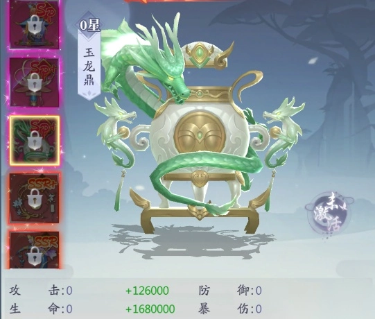 而玉龙鼎,幽冥鬼灯和九阳伞则更为阳刚,玉龙鼎在提升战力方面也是更为强悍,SSR中的SSR说的不愧就是他。