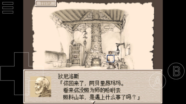 首先我们说明一下操控,电脑端的废都物语操控主要以键盘和鼠标来完成,这里的手机版左方的【+】为上下左右,右边的【A】代表确认/确定,【B】代表返回/取消。