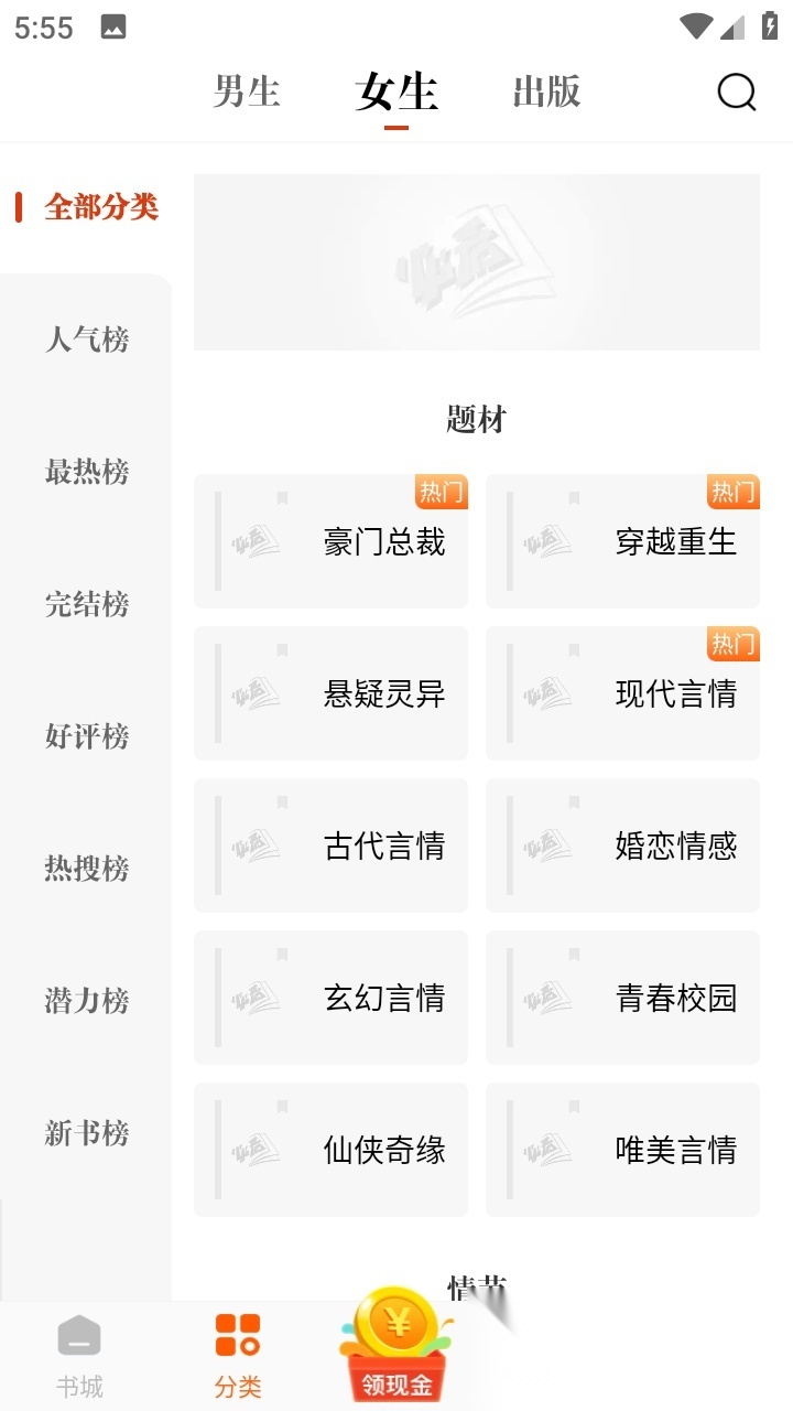 3、软件各类榜单,可清晰呈现最新、最热门的已完结网络小说排名情况。