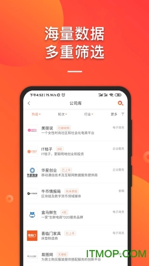 IT桔子安卓版是国内专注于TMT领域创业与投资数据库的手机软件,关注IT领域的用户想必对它不陌生。这款客户端能为用户推送最新行业资讯、创业公司动态,还提供创业人脉对接与咨询服务,有需求的用户不妨一试!