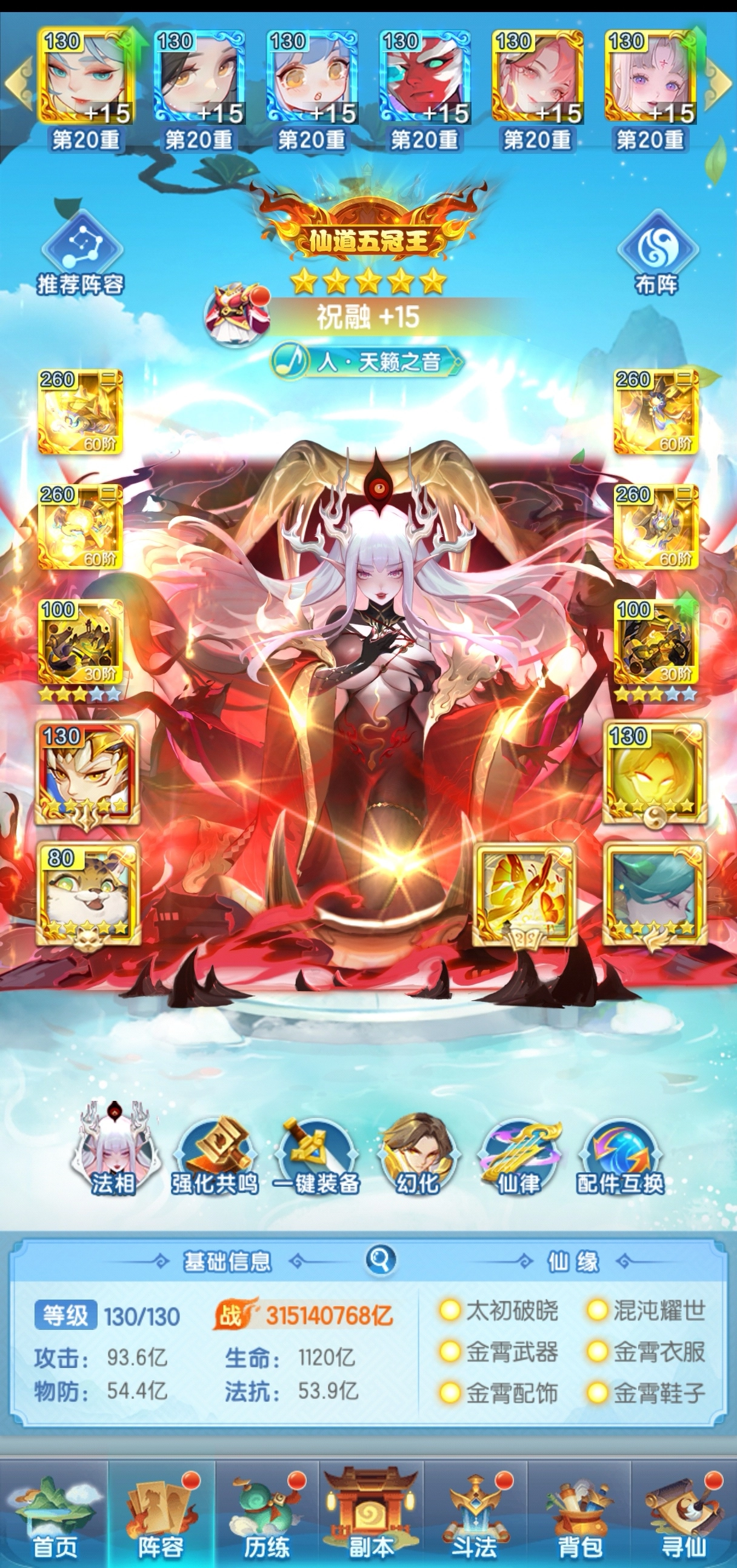 神仙布阵按照加成放就行,哪个阵位加成好,主力神仙就放哪个位置。