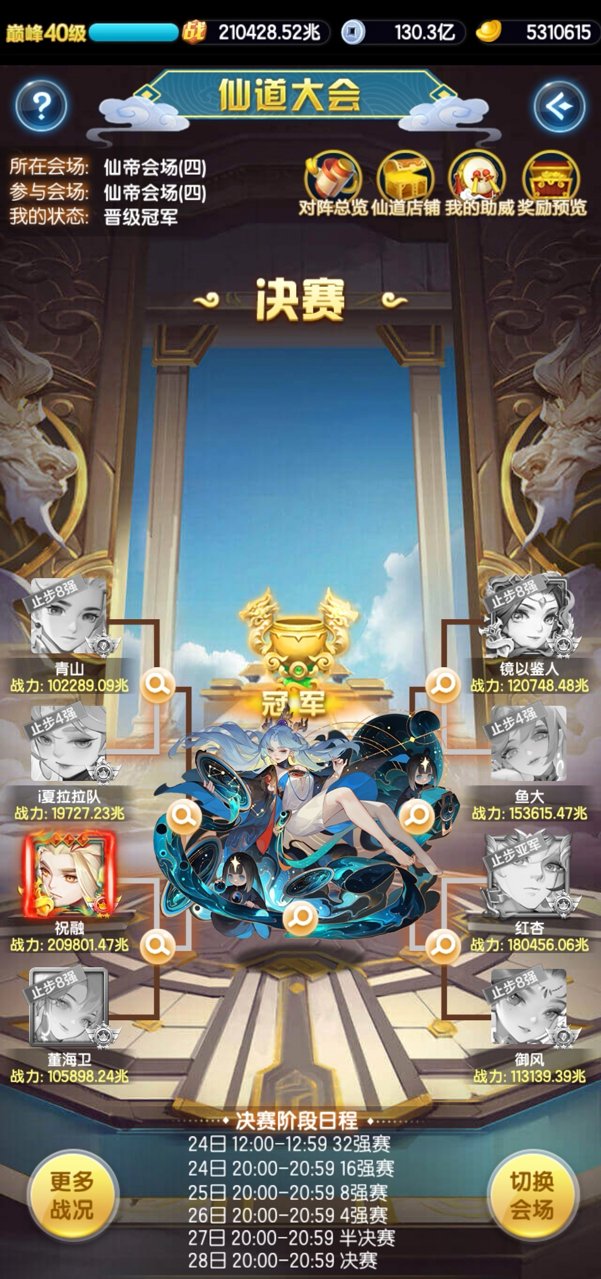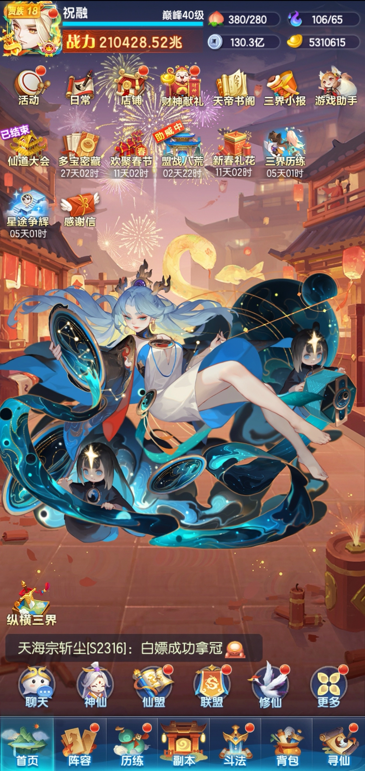 第二个玩法逐鹿云巅是仙盟为单位的pvp(翻新攻略时是过年期间,太忙忘截图了),把外围的分殿和阵法打完后,再打中间的大殿。