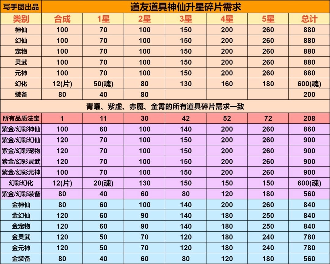 装备器魂平均升级,法宝每人给一双0星后再升星。
