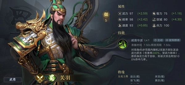 关羽是蜀国的主力输出,也是命中流的武将输出代表。