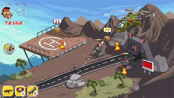 在这段满是英雄激战的街机冒险里,去探索丛林、被敌人占据的城市以及敌方的基地吧。