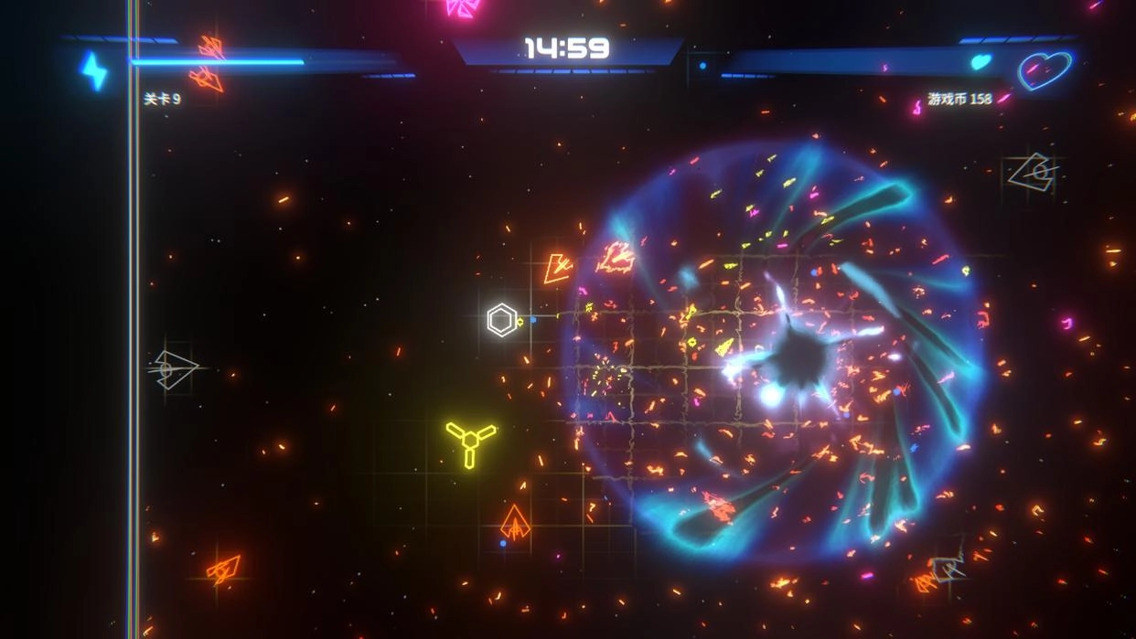 《幸存几何学》(Geometry Survivor)属于类幸存者玩法的游戏。当下,这类玩法的游戏在Steam平台上呈现出雨后春笋般的涌现态势,不少作品都具备独特的风格与亮点。而《幸存几何学》的核心特色,便是其既采用极简画风,又丝毫不缺乏科技感的视觉呈现。
