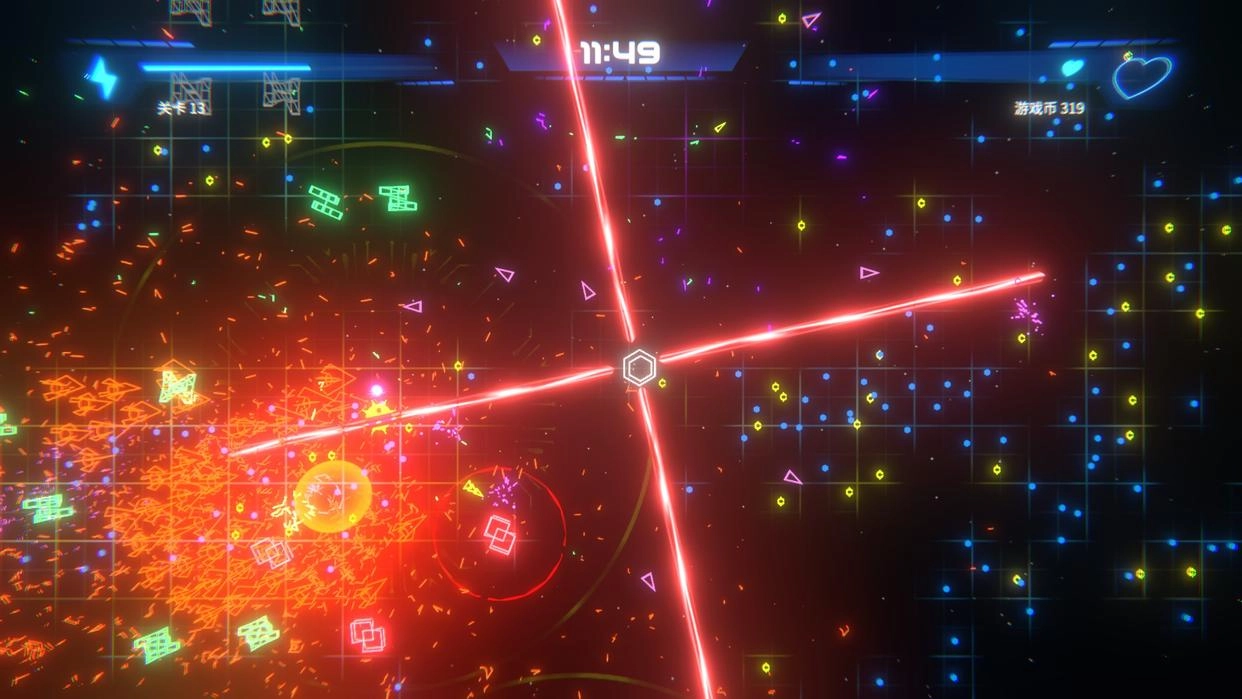 幸存几何学安卓版是一款冒险类游戏,其背景设定在“格栅世界”之中。玩家需要驾驶飞船,在20分钟内抵御来自几何飞船的围攻。游戏借助单手操作与自动射击机制,让玩家能够快速上手,获得轻松的生存体验。玩家只需操控飞船的移动方向,武器会自动进行射击,大大降低了操作难度。而且每一局都会随机生成不同的武器组合,玩家还可以通过游戏币来永久解锁并升级武器。
