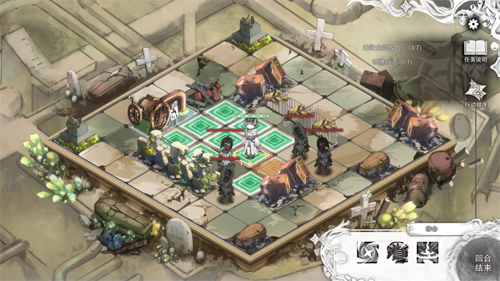 4、角色每回合仅能行动一次,行动结束后需要点击回合结束哦