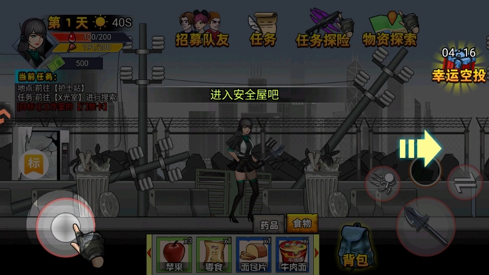 7、搜寻物资,消灭沿途的丧尸,获取资源后返回基地加固防御设施。