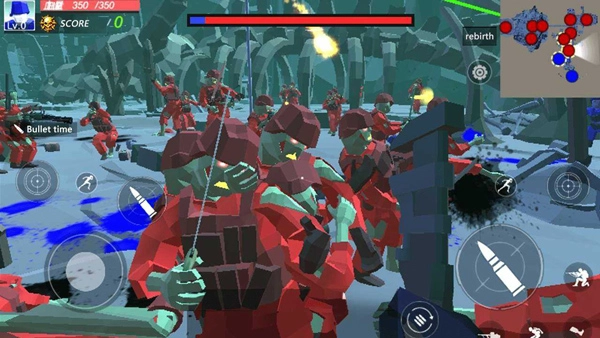 5、正式进入战斗状态后,左侧摇杆用于控制移动方向,右侧摇杆则负责瞄准和射击操作,同时还能进行武器与弹药的切换。