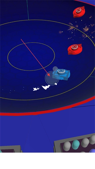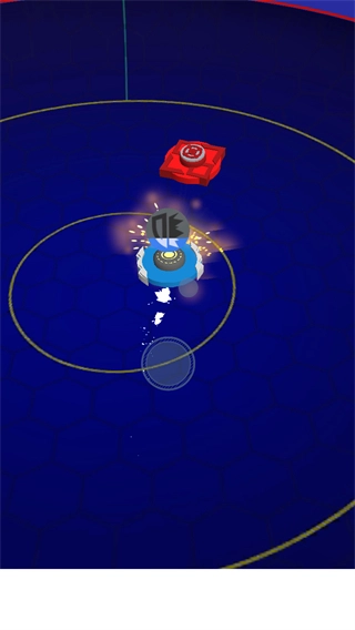2、对局中通过划动屏幕空白区域控制陀螺在圆盘内进行移动,撞击红方陀螺。