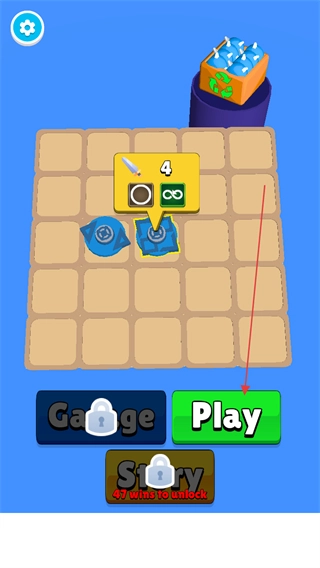 1、启动游戏后,进入布局界面,可通过拖动陀螺在方格上完成合成与移动操作,点击“Play”按钮即可开始游戏。
