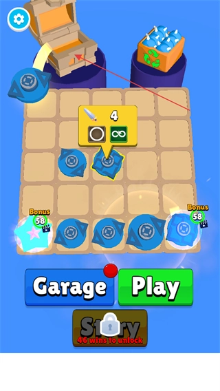 3、将所有红方陀螺都击飞出圆盘红色线外即为挑战成功,获得金币奖励。