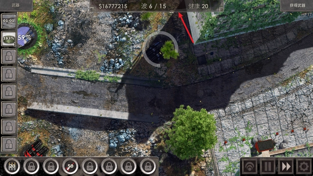 7、上方可以看到剩余的波数,以及剩余的生命数。