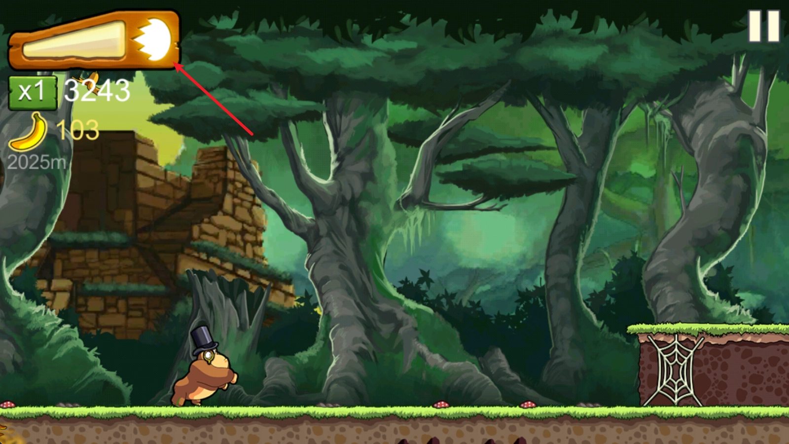 3、拾取香蕉道具可以不断积攒能量。