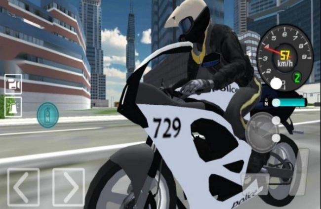 3、成功拦截后,下车执行虚拟执法程序,完成登记或逮捕操作,以此结束任务并获得积分。1、玩家可操控摩托在车流中漂移,精准截停罪犯车辆,操作成功有专属评分与奖励。