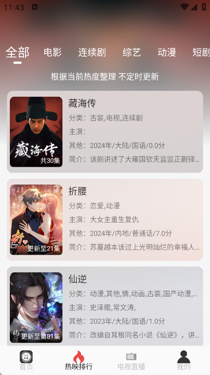 3、详细分类:对影视资源进行了详细分类。根据自己的喜好和需求,可以快速找到想看的电影,提高观看效率。