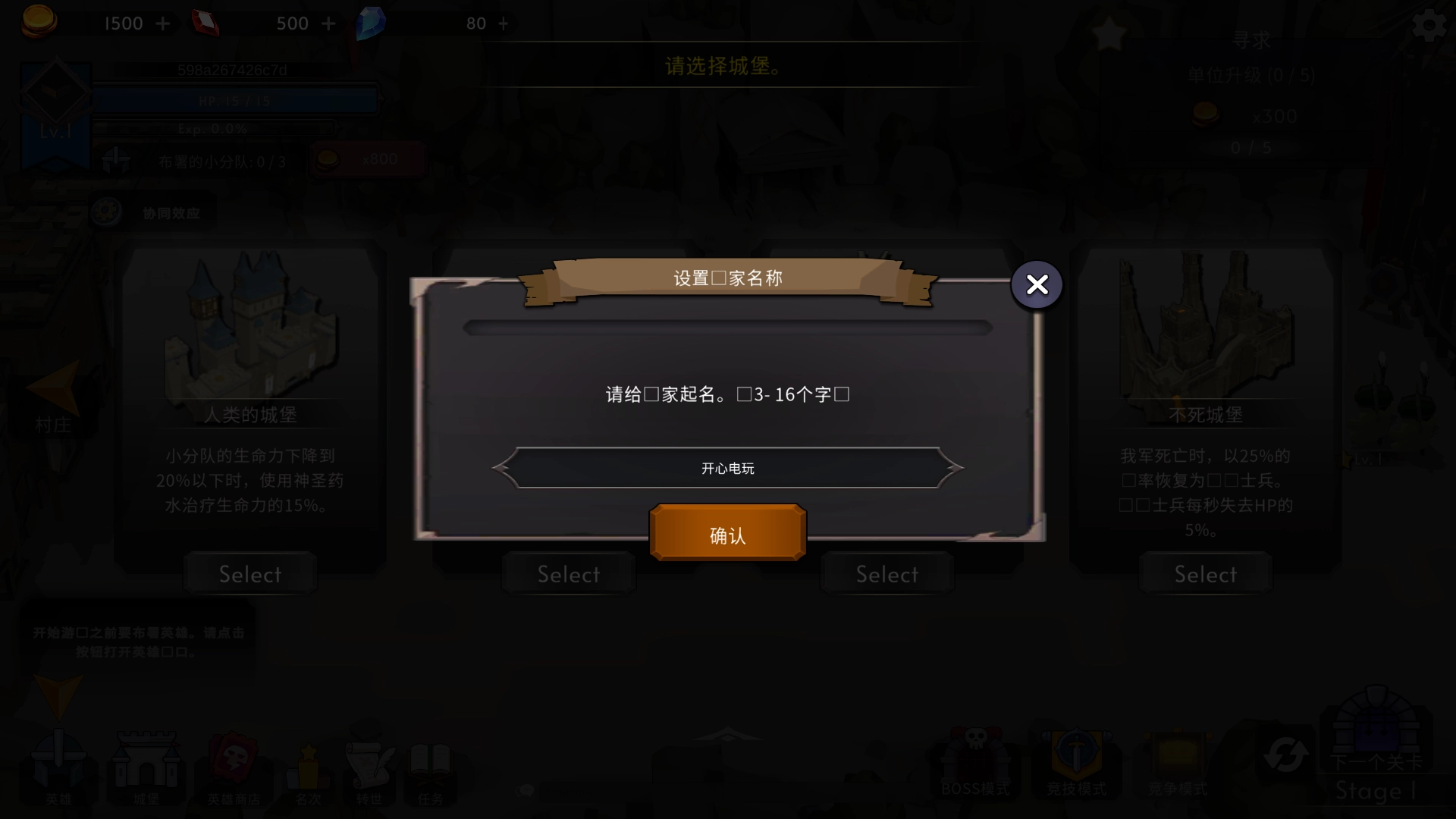 1、打开游戏后先给自己的王国取个名字。