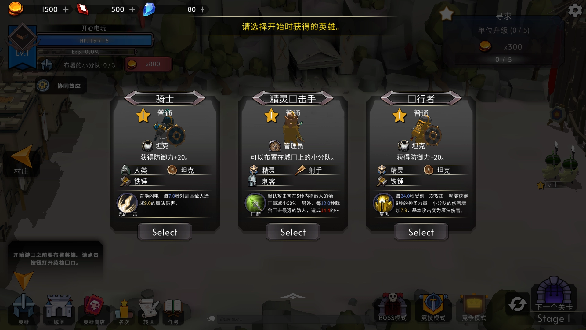 2、选择自己的初始英雄,每个种族不同的士兵都有特殊的能力。