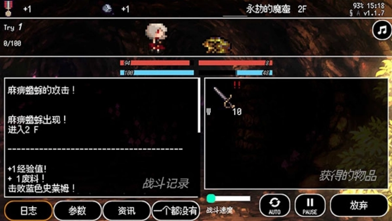 3、战斗全程将自动推进,界面下方会呈现战斗记录与物品获取的相关信息。
