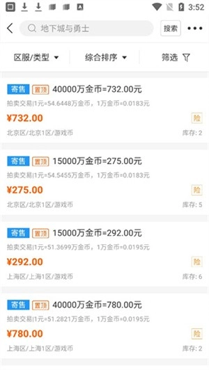 3、页面展示各类账号详情及出售价格,可自行查看对比。