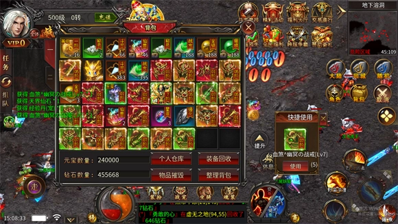 3、高爆率装备设定:所有装备均需通过战斗获取,游戏内装备爆率已全面开放,玩家能在战斗过程中得到各类装备;同时,元宝回收系统也为玩家提供了源源不断的资源保障。
