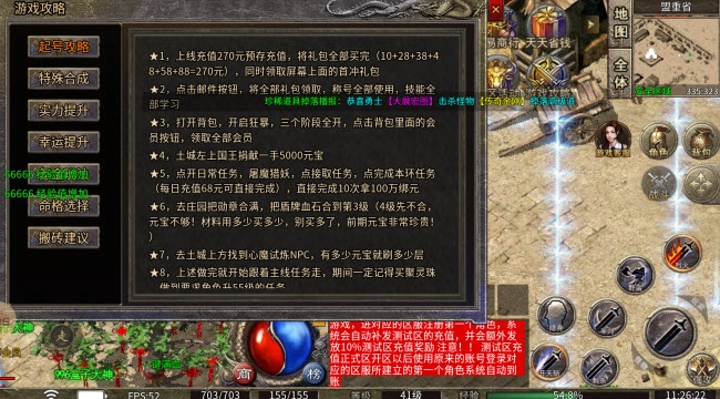 1、上线后预存充值270元,把所有礼包(10元、28元、38元、48元、58元、88元,合计270元)全部购买完毕,与此同时领取屏幕上方的首充礼包。