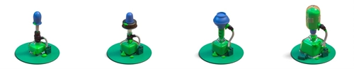首先亮相的是我们的涂料工厂。初期的涂料工厂仅仅是把墨水瓶和滴管连接起来,再配上一根细细的导管,能够方便地储存从各处收集来的涂料资源。不过每次加入原材料之后都得手动摇晃均匀,这实在是一项不小的麻烦事。