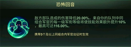 技能解析:降低敌方造成伤害,降低出征的兵力损耗。