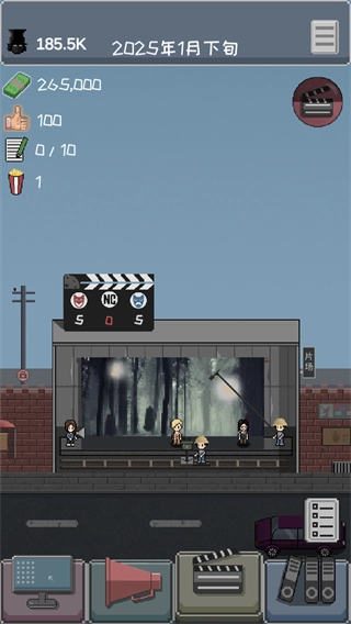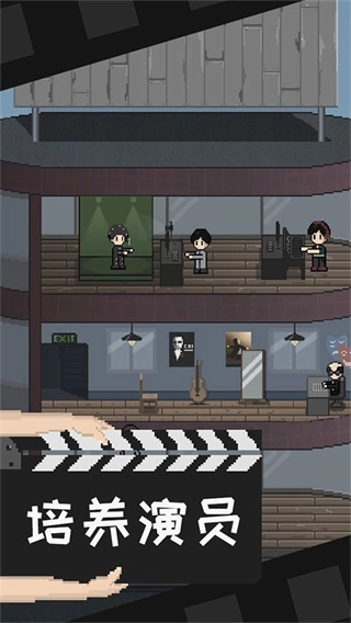 采用经典像素风格与可爱纸片人造型相结合,角色形象呆萌又有趣,场景细节处处体现电影产业特色,色彩搭配明亮活泼,既契合模拟经营的主题,又能带来轻松愉快的视觉感受。