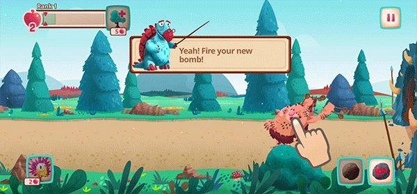Dino Bash(恐龙保卫战)属于策略塔防类型的游戏,采用了卡通手绘的美术风格,营造出轻松幽默的游戏氛围。在游戏里,玩家将化身为恐龙守护者,借助部署霸王龙、三角龙等不同种类的恐龙兵种,同时结合火球炸弹、冰石、诱饵蛋之类的道具与陷阱,来阻挡贪婪的穴居人对恐龙蛋的抢夺。
