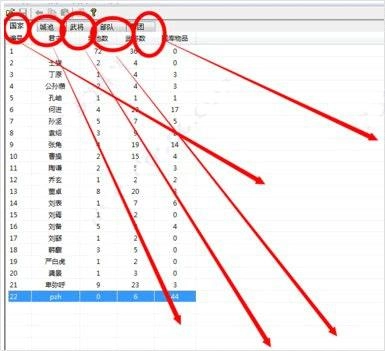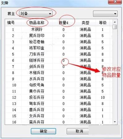 5、双击刘备对应的栏位,可获取修改国库物品数量的功能;右键点击该栏位,能够调整所属君主与其他君主的外交关系;点击图中的数字,即可对相应数值进行修改。