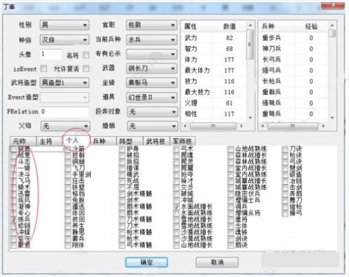 7、修改武将:单击某个武将,可以修改武将的资料,如修改性别、种族、坐骑、持有武器等。