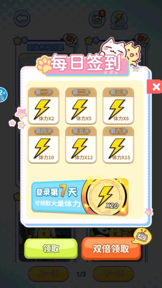 2.点击画面右上角的签到面板,能够领取额外的体力。要注意,每次进行挑战都会消耗体力哦!
