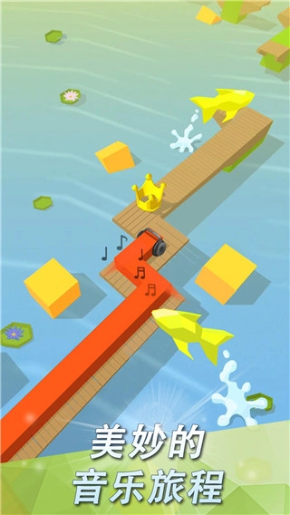 3、跟随音乐节奏,通过点击屏幕来完成大约90度的转向操作,以此躲避途中的障碍与陷阱,在变化多样的地形里顺利抵达终点。