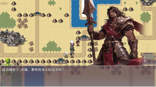 6.回到城镇后会触发剧情,与带有感叹号标识的NPC对话可获得治疗效果,再次对话即可接取寻找草药的任务,同时奶妈张宁会加入队伍。之后前往附近提交任务:向王大爷交付10个头巾可获得技能“聚沙成塔”(主角的第二个法术);向栾楠交付雪山灵芝可获得技能“铁锁横江”(刘备的第二个法术);在右侧苏双处交付马匹可获得300铜钱。需要注意的是,在此处购买马匹需花费500铜钱,性价比不高,建议暂时不购买。