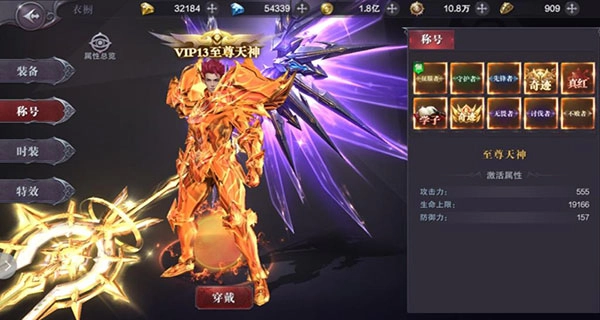 称号可以积累大量基础属性,并获得酷炫外观,根据个人的称号数量累计,基础属性也会不断的累增。