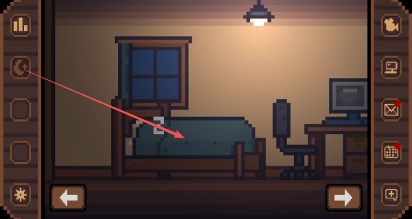 4、在左右两侧点击各个按钮试试,控制角色睡觉,以及其他的活动吧。
