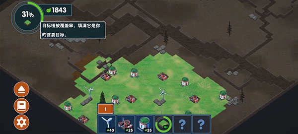 9、逐渐上手后,就自己来吧,完成左上角你的当前目标,让植被覆盖率变得更多!