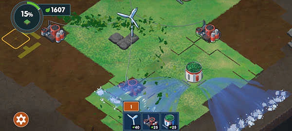 6、根据提示,依次摆放风车、电力机和灌溉装置……每一次摆放都会使你的土地产生变化,直至最终恢复生机!