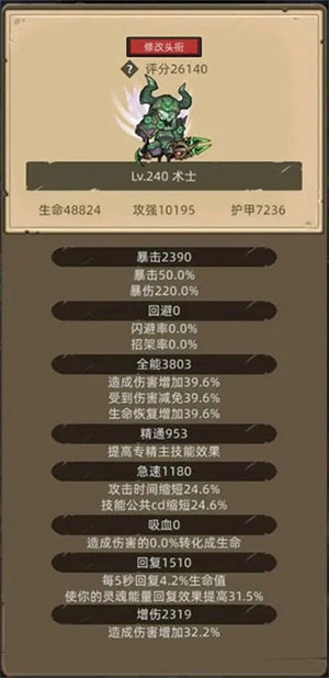 毕业配置建议如下:选择240套装,急速与暴击属性堆到2000点,搭配适量吸血属性以保障生存能力,剩余属性点则全部投入全能以提升伤害。武器方面,优先选用高等级装备来强化前排,毕业武器推荐落日之杖与勇士的靴匕。此外,橡木之心需替换为狂暴羽毛,随从则调整为光明使者和黑色幼龙。