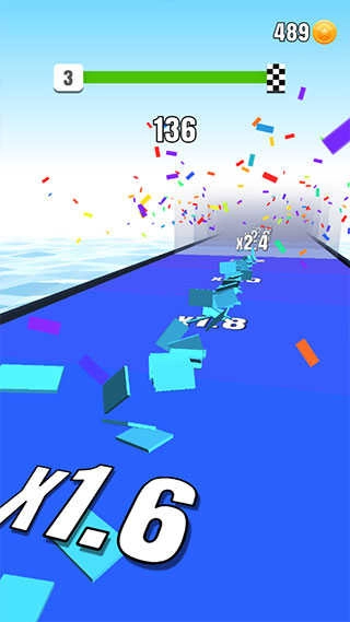 3、在正确的路径里把所有砖块叠加起来,要是砖块的颜色叠加出现错误,砖块的数量就会相应地减少。