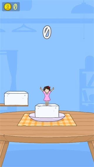 1、试着点击屏幕,让小女孩跳起来,我们的目标是把豆腐块一层一层堆叠成高高的塔,跳得越高就越好。