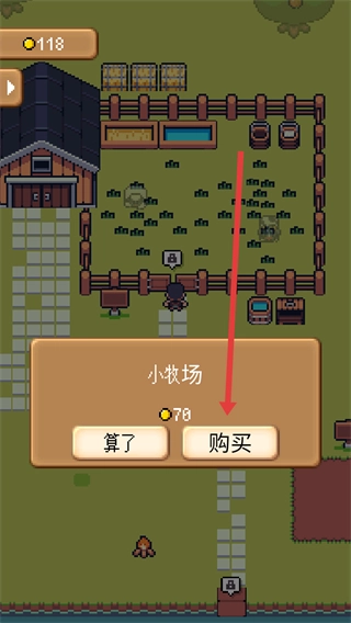 2、在弹出的界面里选择小牧场选项,花费78金币点击购买,即可完成牧场解锁。
