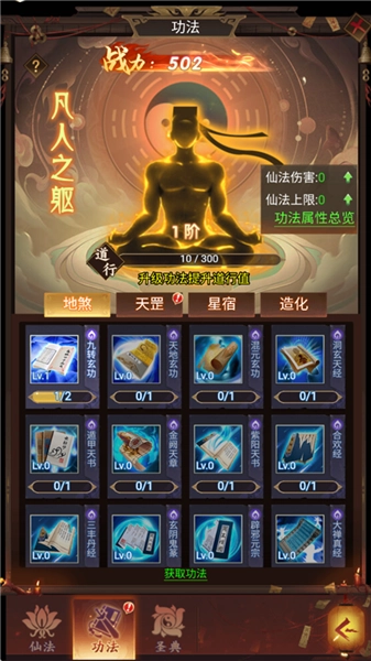 激活或升级功法能够增加道行值,功法的品质越好,所能提升的道行值就越多;道行可以提高仙法的升级上限,同时也能提升仙法伤害百分比的上限。