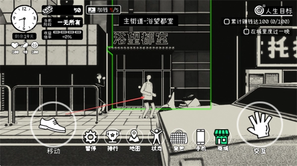 1、通过点击移动来操控角色,前往欲望都市区域,以此推进游戏进程。