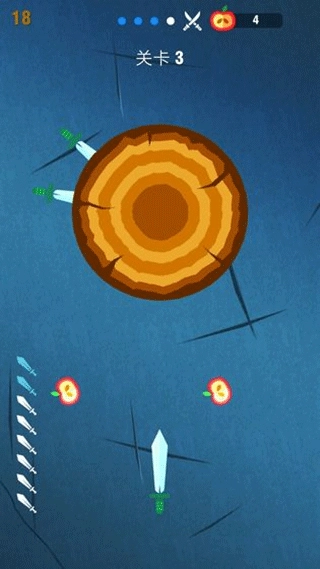 2.水果奖励机制:树轮上会随机出现苹果之类的水果,击中这些水果就能得到额外积分,以此来弥补没命中树轮时的分数损失,还能让玩家有更多策略性的选择。