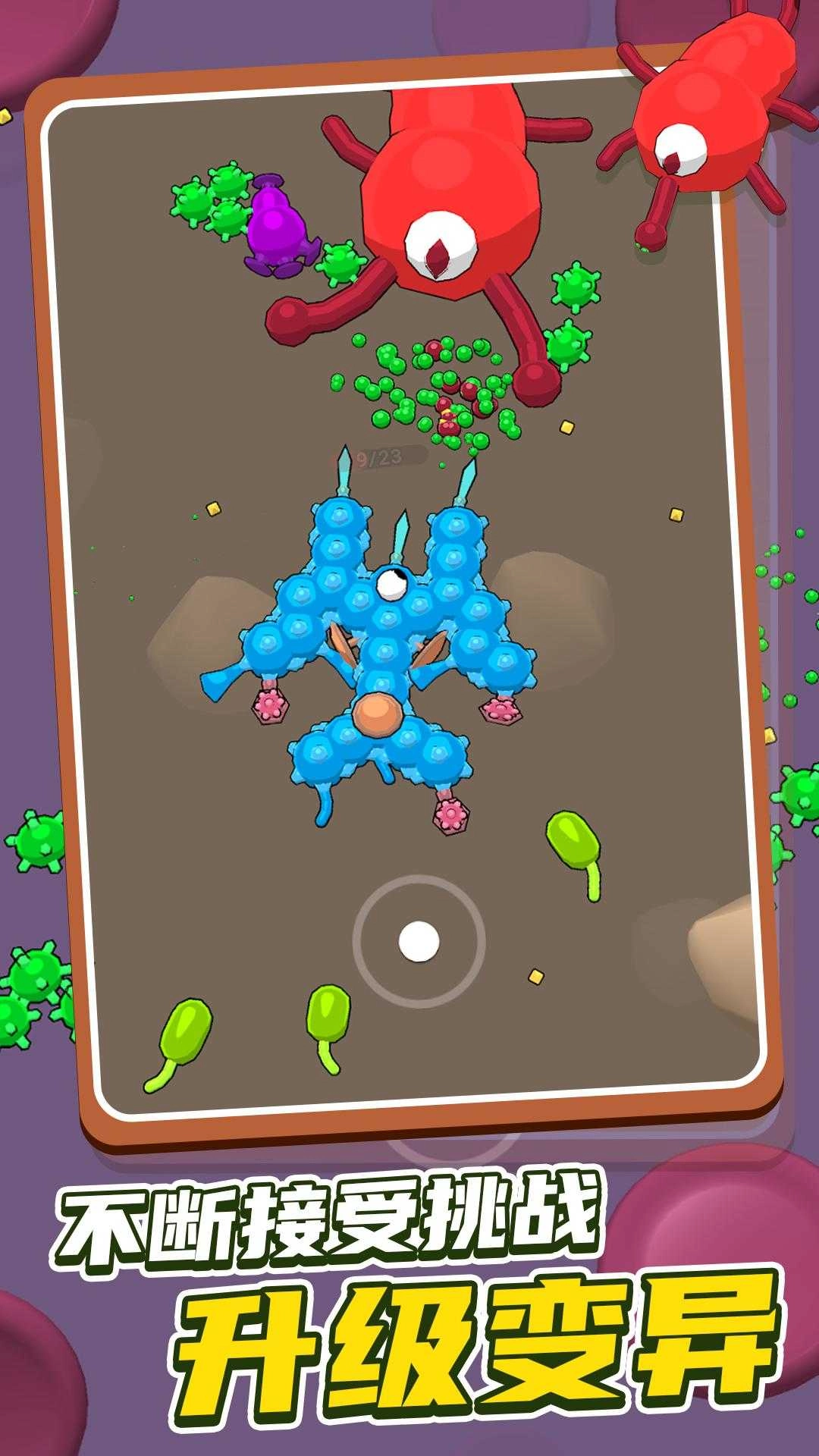 在随机生成的菌落地图中穿梭,会遇到习性各异的对手:长有毒腺的跳蚤、精于伏击的隐翅虫、成群出没的食腐蚁……每一次邂逅都或许会改变你的进化轨迹。不存在重复的关卡,唯有持续存在的生存压力与应对策略。