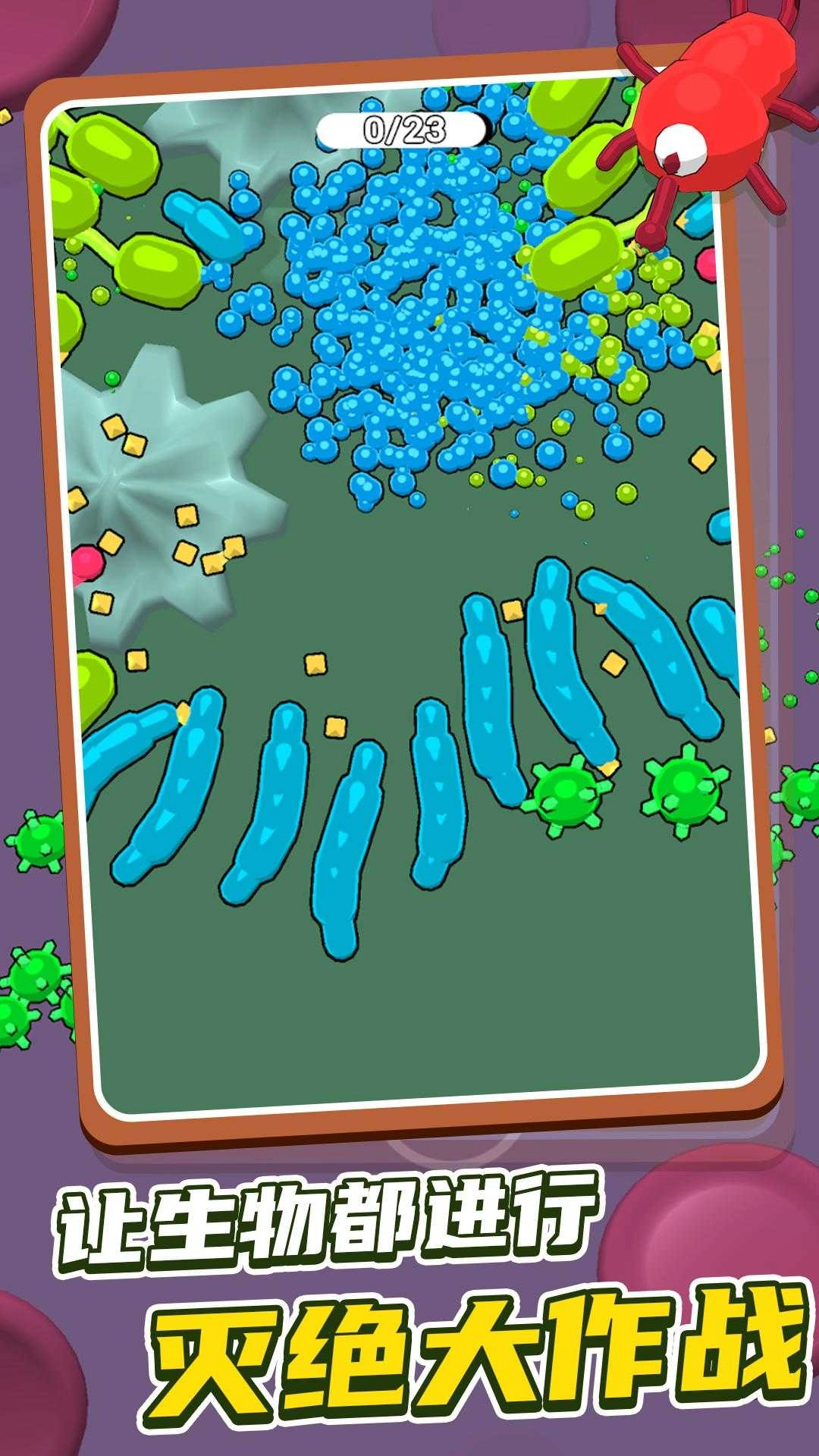 昆虫大乱斗是一款策略对抗型休闲游戏,玩家将操控不同形态的昆虫细胞,在动态变化的地图里捕食弱小、躲避天敌并积累能量。随着战斗的进行,角色能逐步进化出锋利口器、强力甲壳或喷射毒液等特殊能力,每一局游戏都充满不确定性。关卡设计结合了策略与操作元素,既有快节奏的追击战斗,也需要预判环境中的陷阱和对手的行动方向。