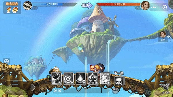 匹配成功即刻进入战场,双方轮流行动,通过角度与力度控制炮弹轨迹,考验对风向、地形与道具组合的理解。